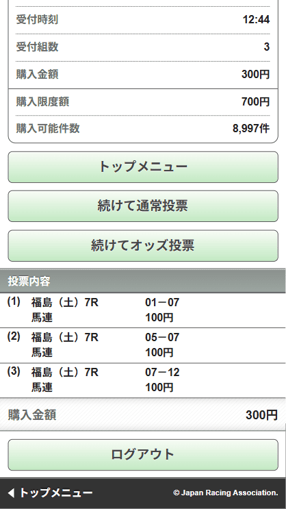 今回はAI予想の買い目から、馬連の7番流しを購入しました。