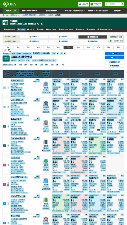 JRA公式サイトの出馬表にある出場馬の情報を○○コピーして、ChatGPTへ貼り付けます。