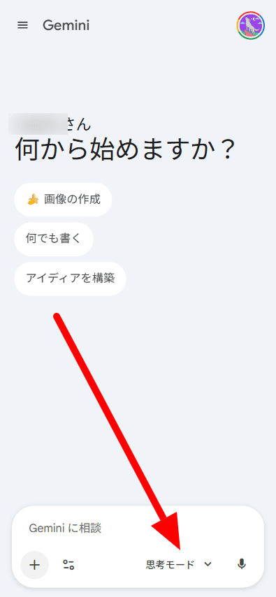 - Step.3右下の「思考モード」か「高速モード」と記載されているボタンをタップ