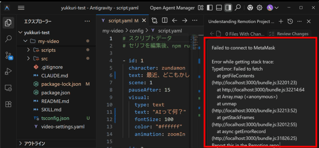 RemotionとAntigravityでゆっくり動画を作る方法