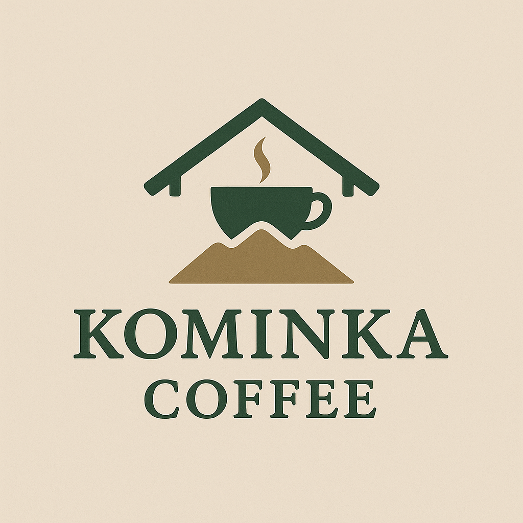 #あなたはプロのロゴデザイナー兼ブランド戦略家です。 以下の情報をもとに、意味のあるロゴ案を提案してください。 ブランド名:KOMINKA COFFEE(コミンカコーヒー) 事業内容:古民家をリノベーションしたスペシャリティコーヒー専門カフェ 主力商品/サービス:シングルオリジンコーヒー・ハンドドリップ・季節の和菓子ペアリング 強み・優位性: ・古民家の落ち着いた雰囲気 × モダンなスペシャリティコーヒー文化の融合 ・生産者と直接つながる高品質豆の提供 ・「長野」という地域性と観光資源との親和性 現在の顧客像と理想の顧客像: ・現在=コーヒー好きの20〜40代、観光客中心 ・理想=地域住民・観光客・外国人旅行者も含む多世代顧客 理想のブランド印象:上質感・温もり・地域文化への敬意・居心地のよさ ブランドの未来像(10年後): ・長野を代表するカフェとして全国からファンが訪れる存在 ・古民家再生とコーヒーカルチャーを結びつけるロールモデル的ブランド 希望デザイン: ・モチーフ=古民家の屋根/コーヒーカップ/山(長野) ・テイスト=ミニマル × クラシックの融合 ・フォント=温かみのあるセリフ体 or モダン和文フォント ・カラー=深緑+ベージュ+ブラウン ロゴを使う場面:ショップ看板/Web/パッケージ(豆袋やコーヒーカップ)/観光ガイド掲載 ロゴで得たい効果: ・観光客に「ここにしかない特別感」を与える ・地域の人に「日常に溶け込む安心感」を持ってもらう ・ブランドの持続性と信頼を訴求