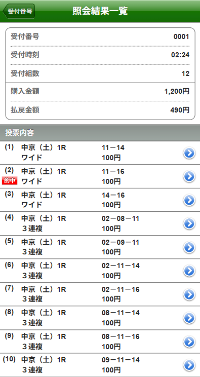 とりあえずChatGPTの予想で買うと、現状どれくらいのオッズが付くのか確認してみましょう。