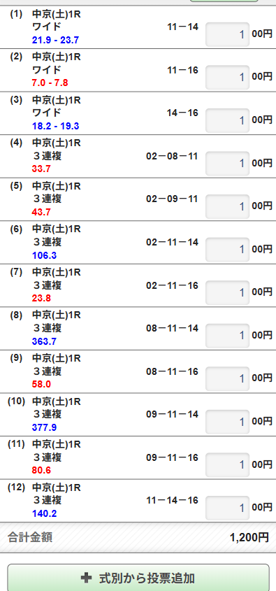 14番が現状オッズ約26倍の12番人気ということもあり、ワイドでも結構ついていますね。