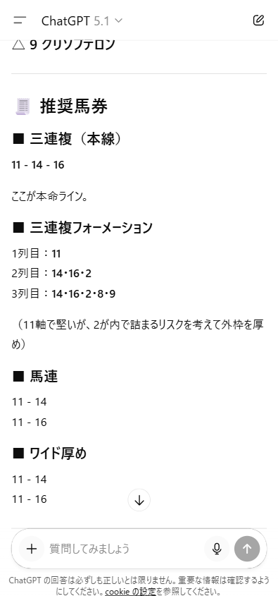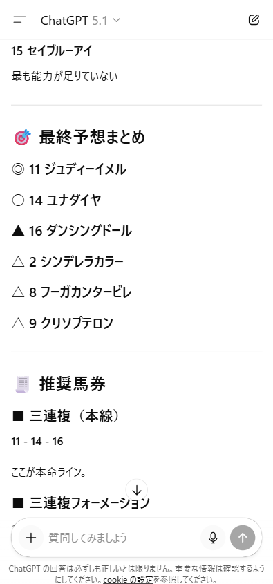 今日はChatGPTに予想してもらい、平場のレースに挑戦します!!
