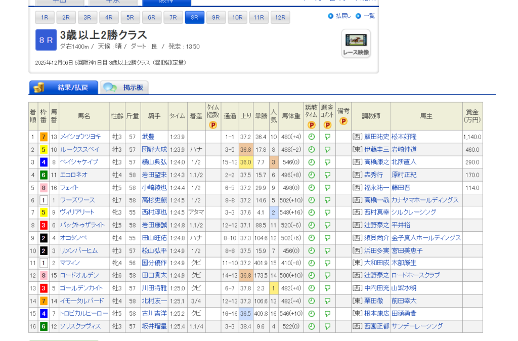 ChatGPTによる阪神ダート1400m「3歳以上2勝クラス」の結果