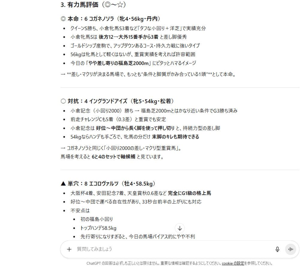 今日も今日とてChatGPTと一緒に競馬予想をしていきます!!