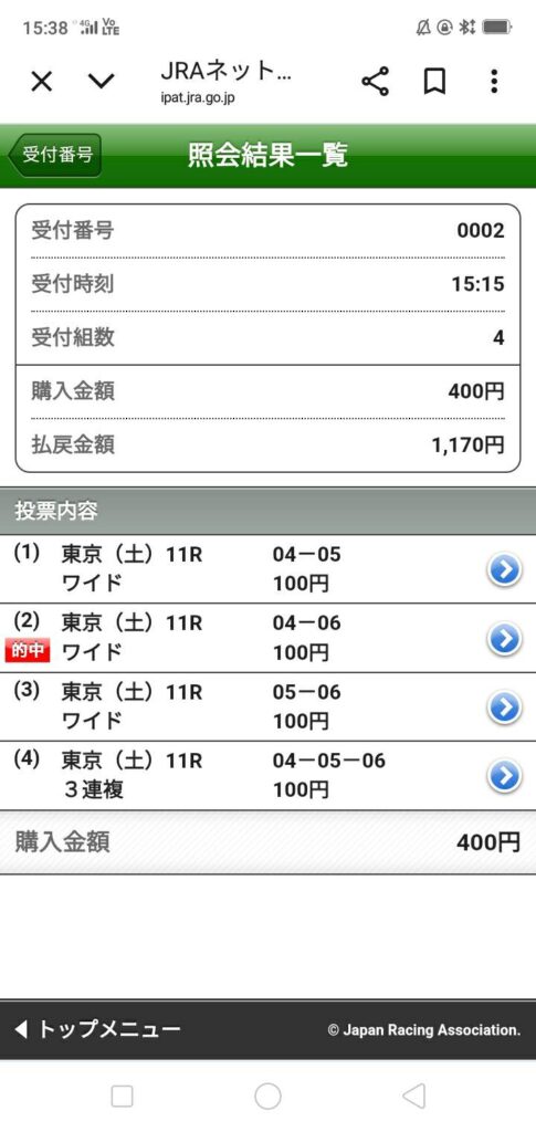 結果:ワイド見事的中!!