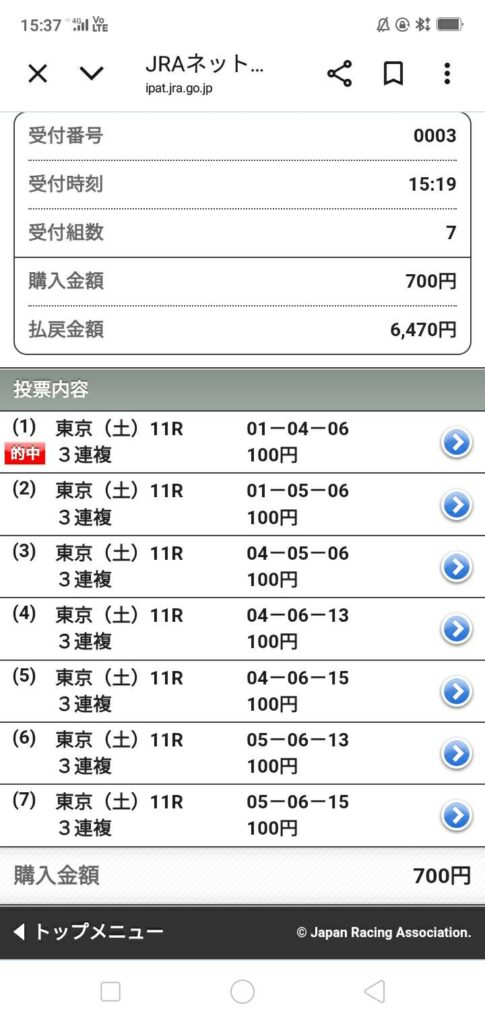 そして、AI馬券に従って個人的に3連複を買った結果、
